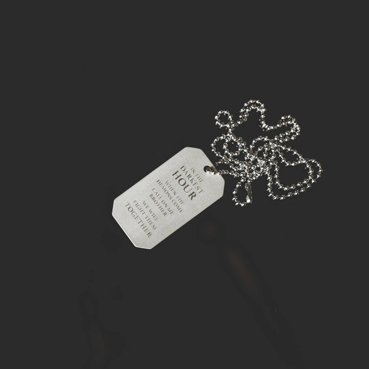 Victory is never achieved in isolation. To triumph in this battle, you need the strength and loyalty of your brothers by your side. The stainless steel dog tag is designed to represent the bond to your brothers. A symbol of unity, resilience, and shared purpose. Wear yours proudly.